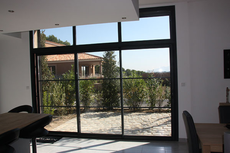 Style contemporain ou verrière : petits bois fins et intégrés.
